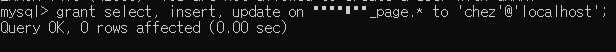 grant select, insert, update on DB명.* to '아이디'@'%';