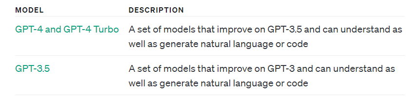 OpenAI가 제공하는 모델의 정보를 확인하였을 때,