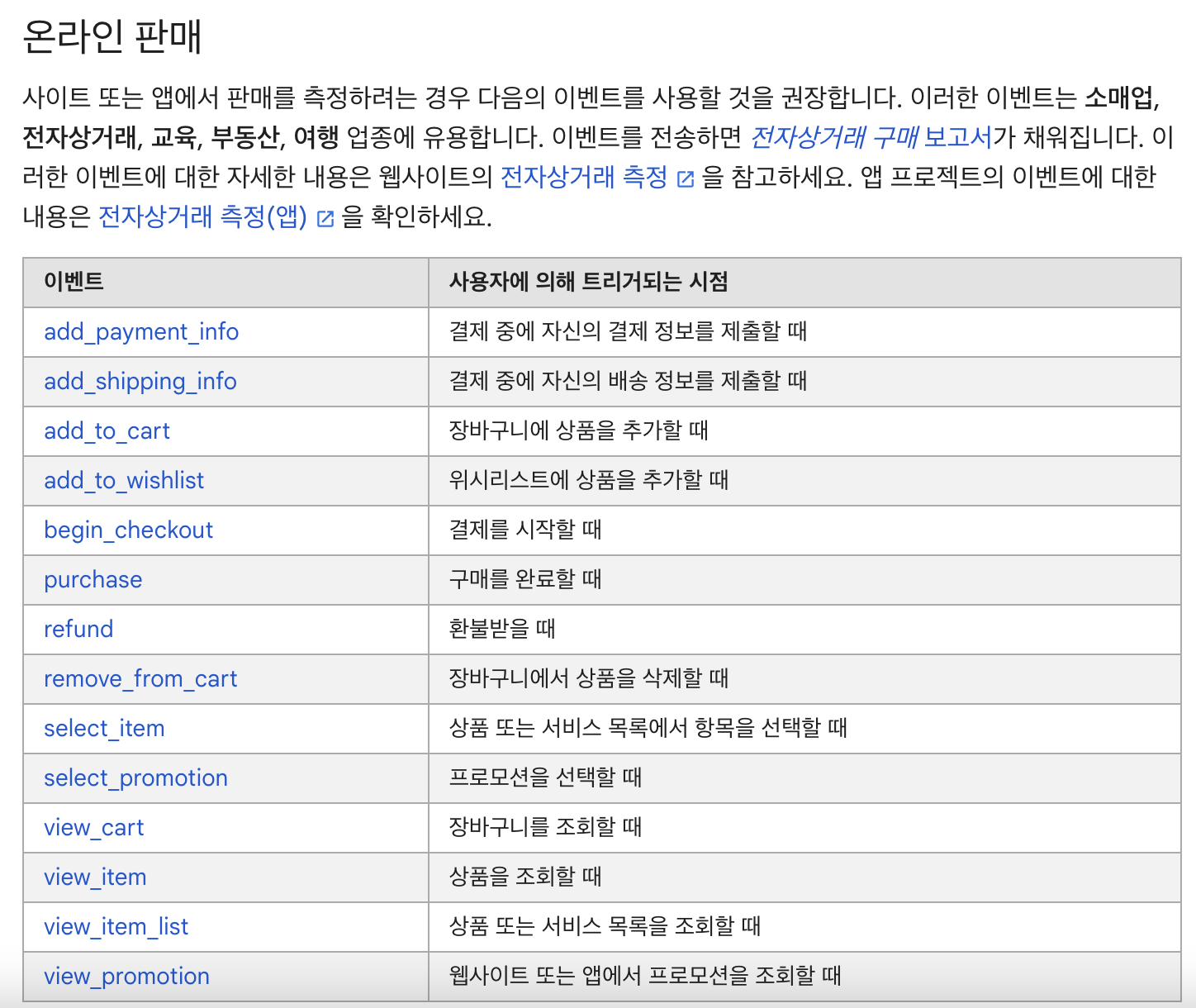 GA의 추천 이벤트 (커머스)