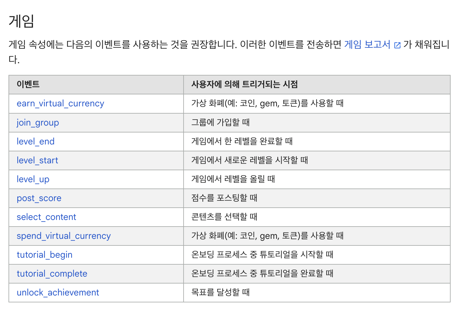 GA4의 추천 이벤트 (게임)