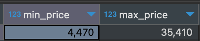 사용 예시 (주문 가격의 최솟값, 최댓값 구하기)