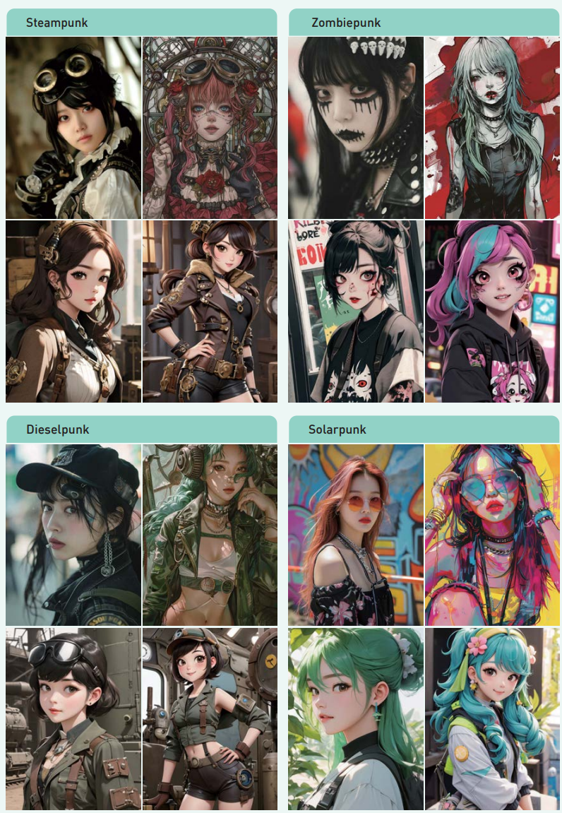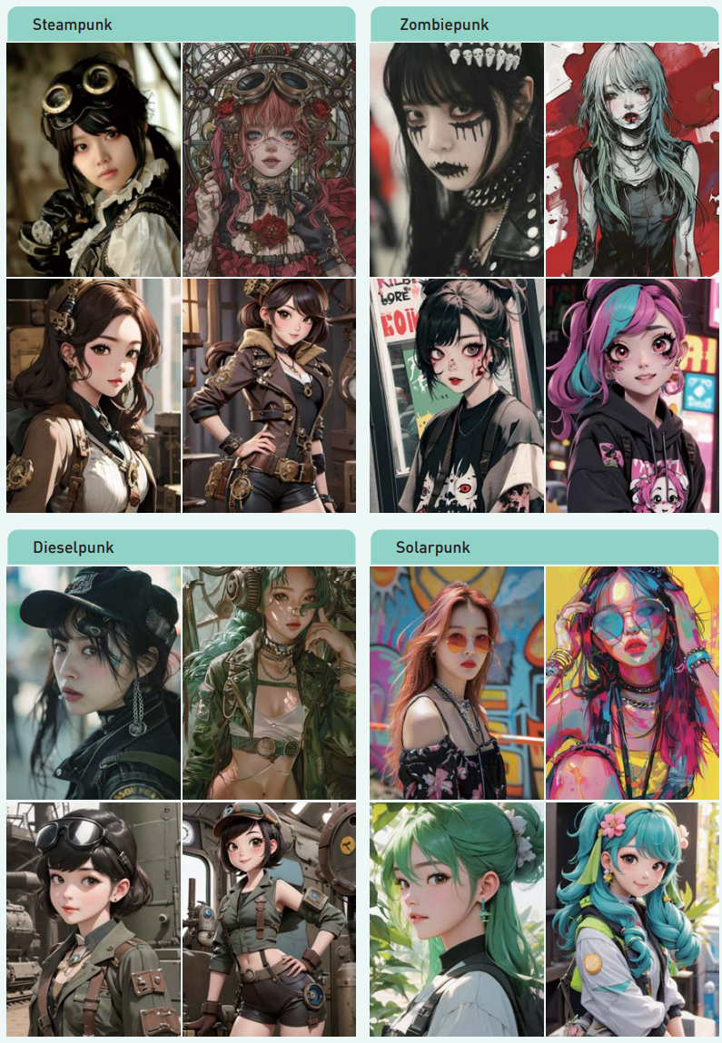 Nonsense, Immaterial. Intangible. Visual (Rhetoric. Exaggeration). Exaggerated, Exaggeration, Retro(wave), Nostalgia(core), Vintage, Antique, Postcyberpunk, Nanopunk, Raypunk, Rollerwave, Rustic(core), Rococopunk, (re—)Historic, Prehistoricore, Jurassic,