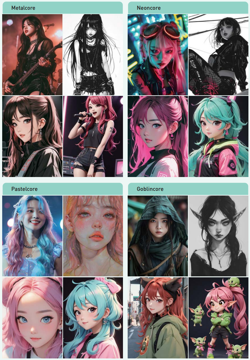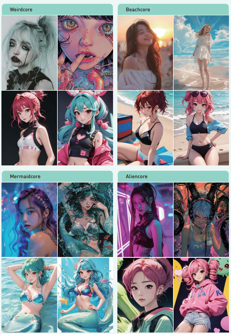 Ice Age, Wild West, Modern, Modernismo, Futuristic, Future Funk, (Retro—. Cassette) Futurism, Afrofuturist, Sci—fi, Alchemy, Terrestrial, Extraterrestrial, Alien, Invaded, Invasion, Aurorae, Aurora(core), Weirdcore Aurora, Magical, Magic(punk), Spell, Mystic, Mystical. Psychic. Metaphysical. UFO. Lightsaber. Aetherpunk. Dracopunk, Dragoncore, Fairy Folk. Supernatural. Cryptidcore. Ghostcore. Cypernoir. Wizardcore. Unicorncore, Spriggancore. Spiritcore. Rangercore. Magewave, Eye of Providence. Illuminati