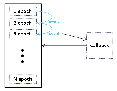 보통 Keras에서는 특정 이벤트가 1epoch 돌아갈 때마다 나타납니다.