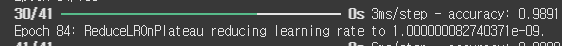 model.fit(tr_images, oh_tr_labels, batch_size=16, epochs=100, validation_data=(val_images, oh_val_labels), callbacks=[reduce_lr_cal])