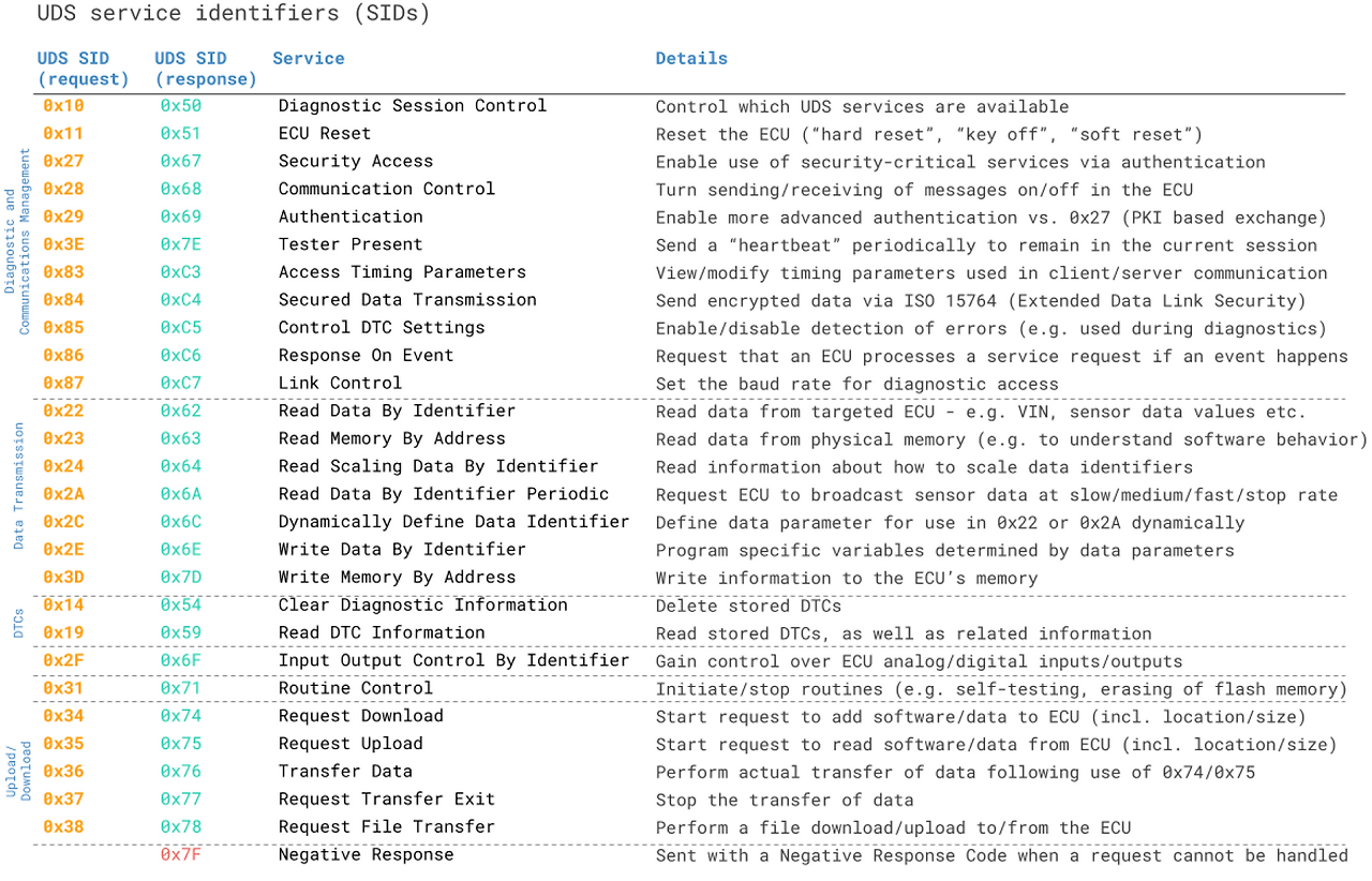 목록: https://en.wikipedia.org/wiki/Unified_Diagnostic_Services