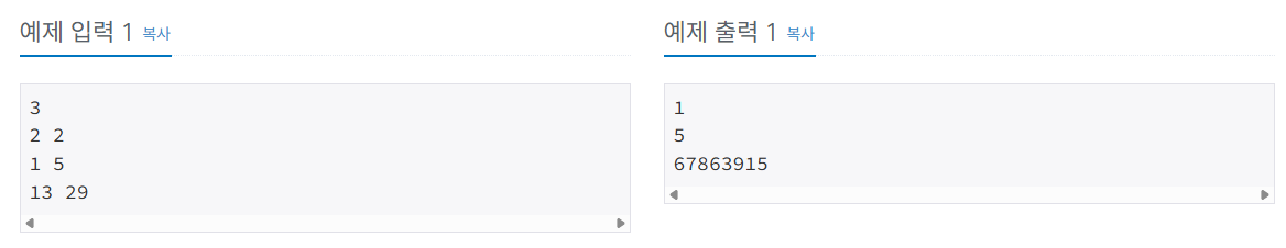각 테스트 케이스에 대해 주어진 조건하에 다리를 지을 수 있는 경우의 수를 출력한다.