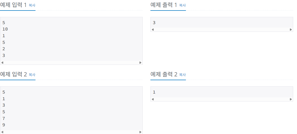 첫째 줄에 N이 주어진다. N은 500,000보다 작거나 같은 자연수이다. 둘째 줄부터 N개의 줄에 A[1]부터 A[N]까지 하나씩 주어진다. A에 들어있는 수는 1,000,000보다 작거나 같은 자연수 또는 0이다.