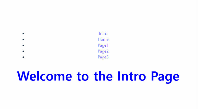 자식 라우터에 index 를 넣어주면 디폴트로 보여지는 페이지가 된다. 여기서는 page1을 설정하였다.