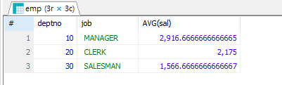 SELECT deptno, MAX(sal), MIN(sal) FROM emp GROUP BY deptno;