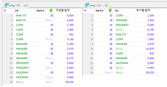 SELECT deptno,job, SUM(sal) AS "부서별 합계"