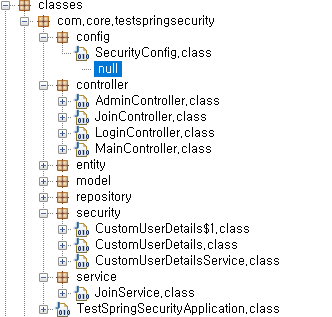 클래스가 애플리케이션을 실행하는데 필요한 초기화 작업을 처리하고, 실제로 실행되는 클래스인 Start-Class: com.core.testspringsecurity.TestSpringSecurityApplication
