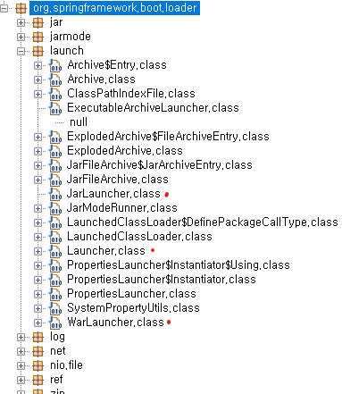 이러한 특성으로 인해 JAR 파일이 실행될 때 특정 클래스가 시작점으로 사용되는데 JarLauncher