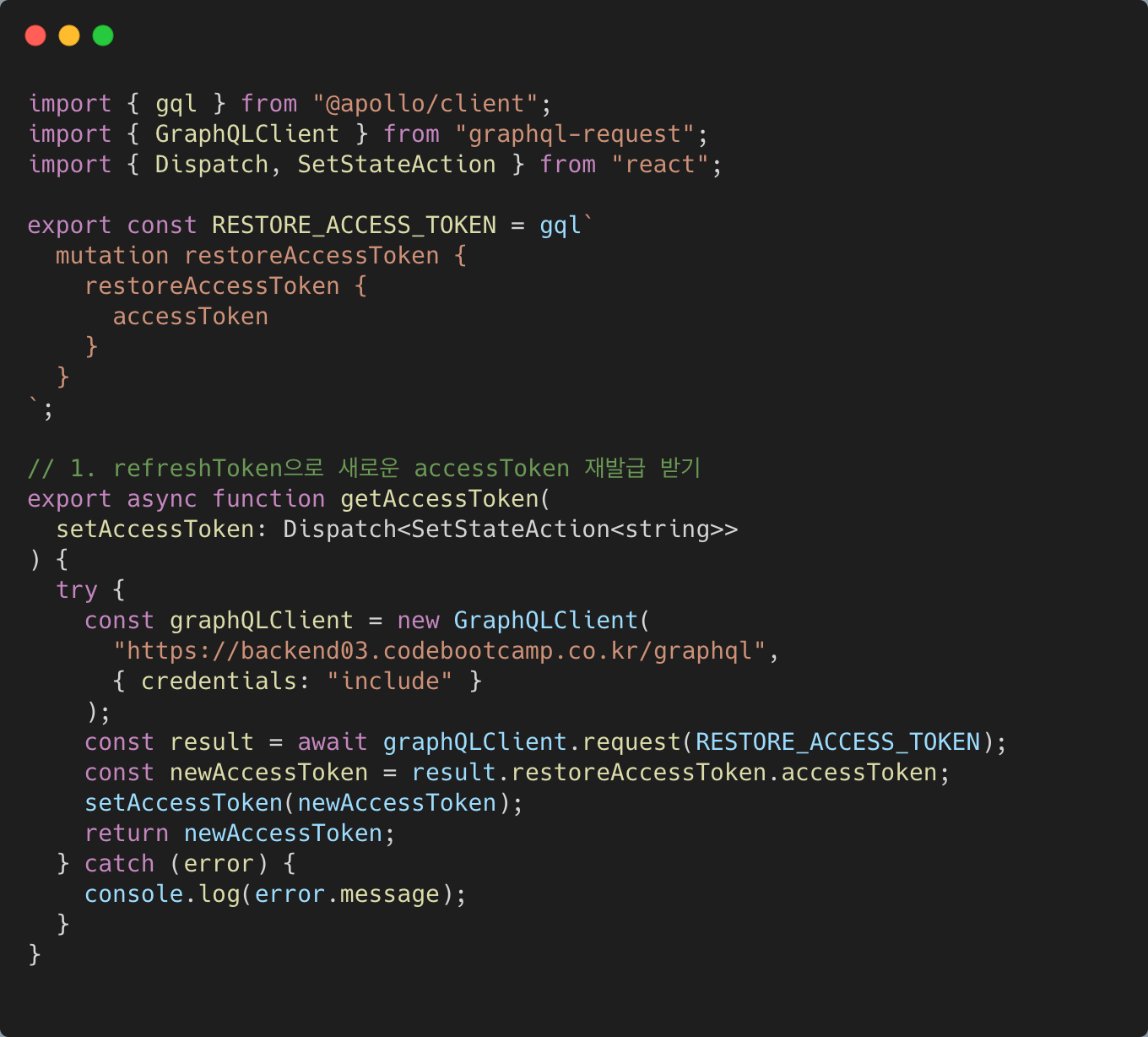 app.js에서 ApolloProvider을 사용해서 useMutation, useQuery등을 사용할수 있었는데 app.js에서는 useMutation, useQuery을 사용할수 없기때문에 graphQL-request 라이브러리를 이용한다.