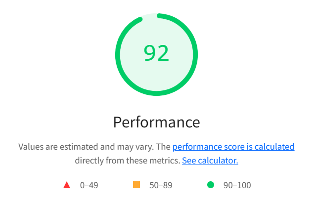 이를 수치로 확인하기 위해 Lighthouse의 성능 점수를 기준으로 비교해보겠습니다.