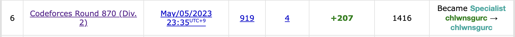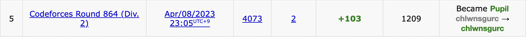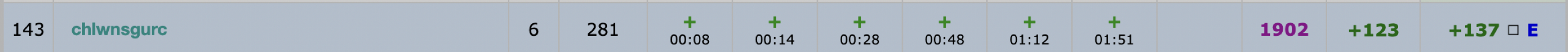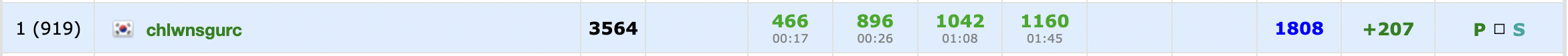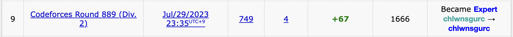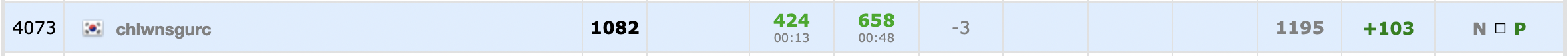 1점이 부족하여 민트에 남게 되었다. 그래서 바로 다음 라운드 대회를 등록한 후 참가하였고 운좋게 DIV2 4솔을 하게 되어 블루를 찍게 되었다.