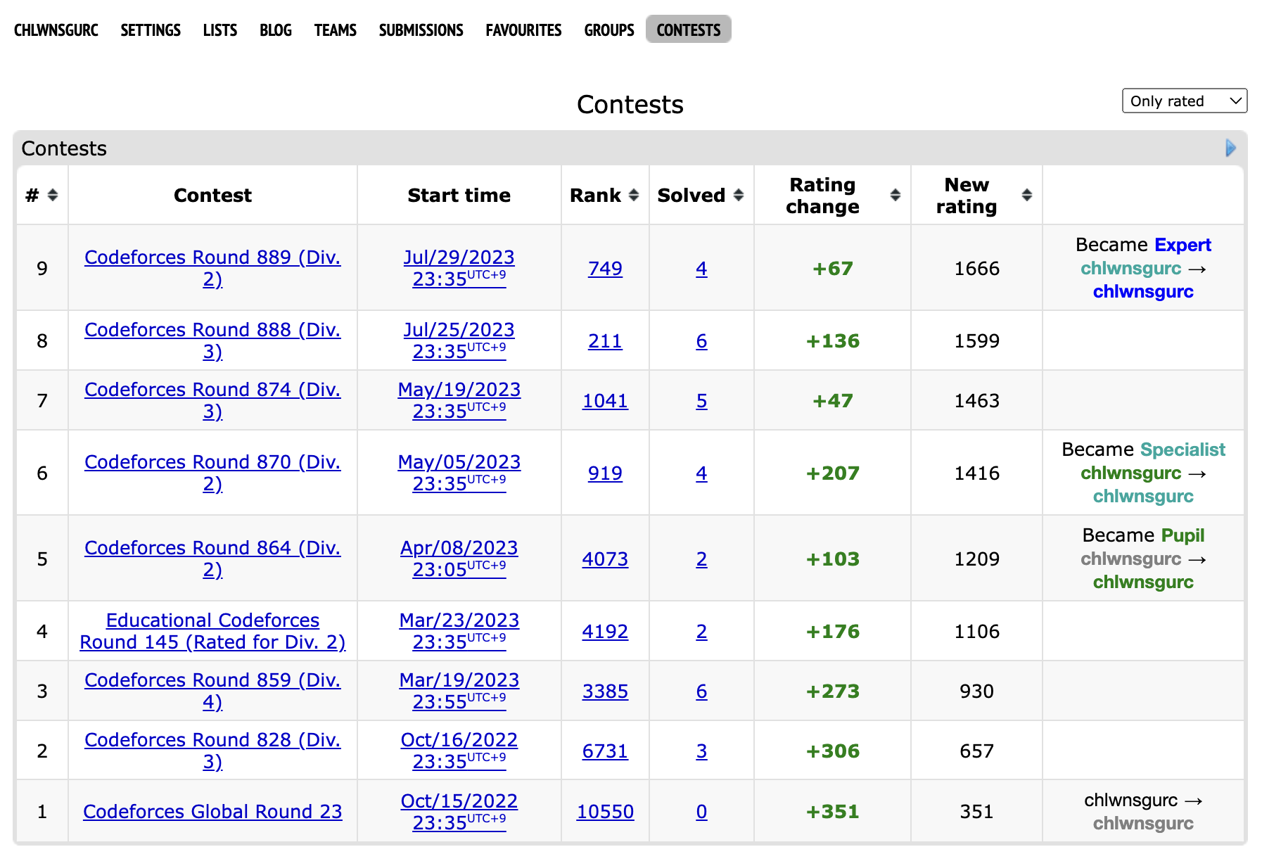코드포스 랭크와 레이팅에 그날의 기분이 결정될 만큼 나름 코포에 진심이었던 한 학기였기에 그 과정을 되돌아보며 기록을 남기고자 글을 쓴다.