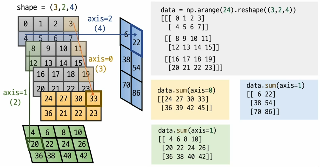 ndarray가 있을 때 갯수에 관계 없이 전체를 다 더하고 싶을 때 sum을 사용한다