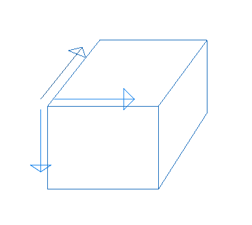y = ↓ x = → z = ↘ ( 3차원 정육면체 격자 기준 상상 )