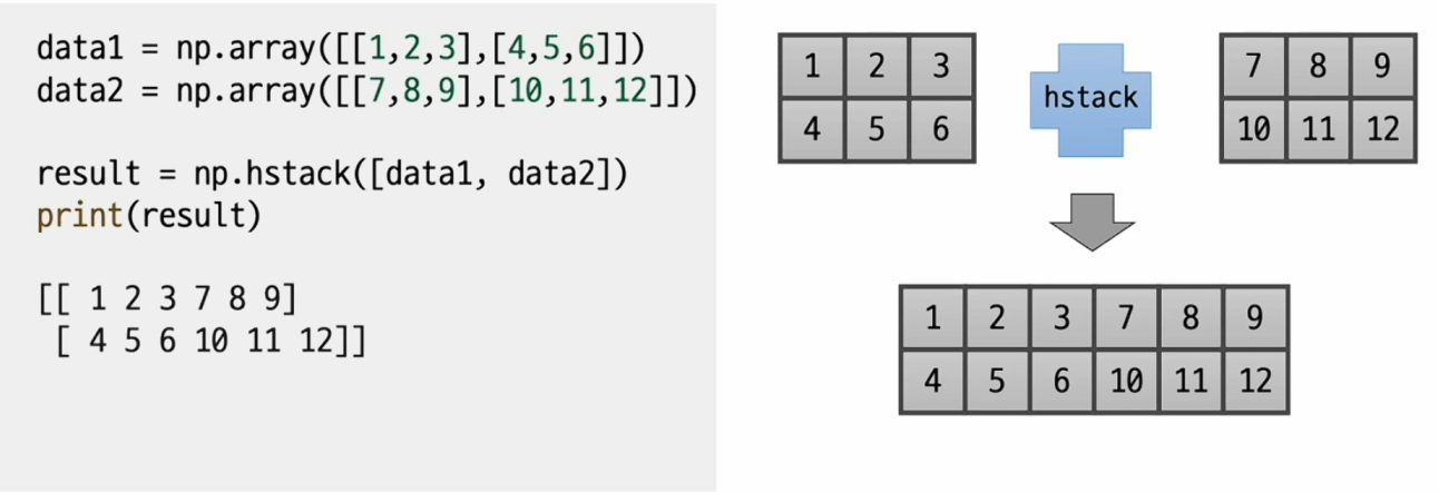 hstack 벽돌 쌓는 것처럼 옆으로 쌓는 것