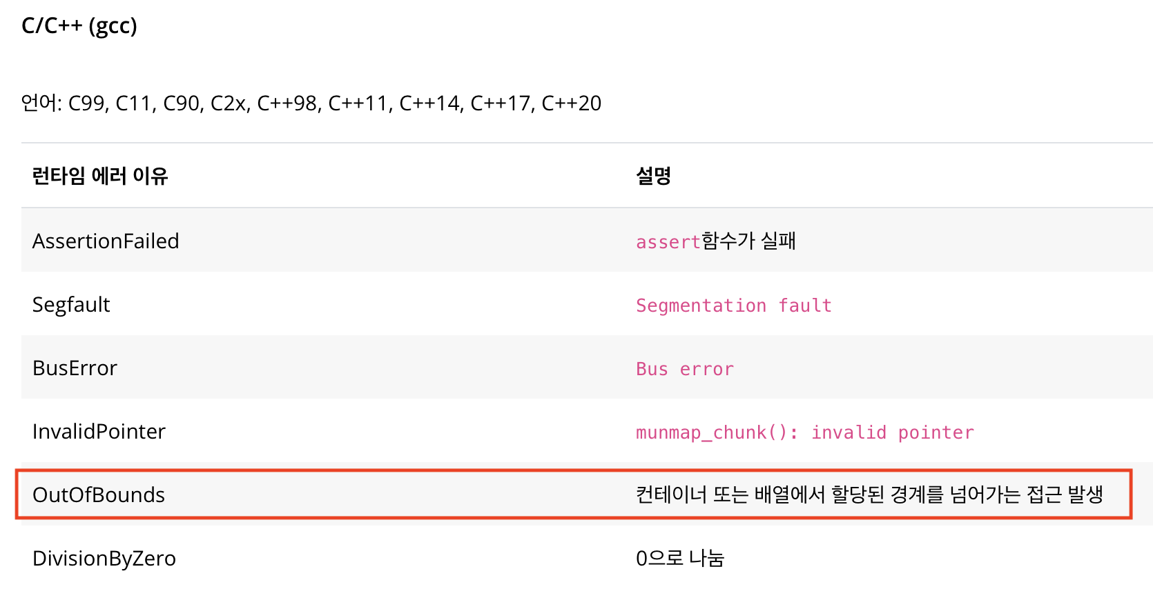 이 코드는 런타임 에러(Out Of Bound)가 발생한 코드 입니다.