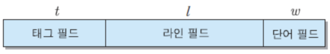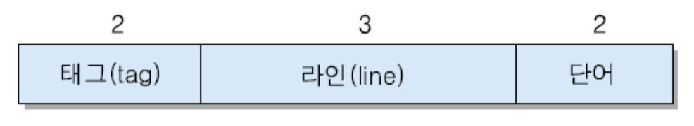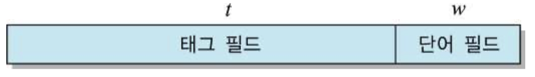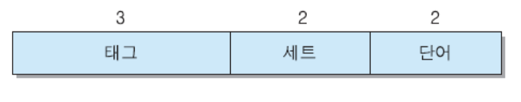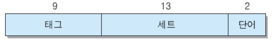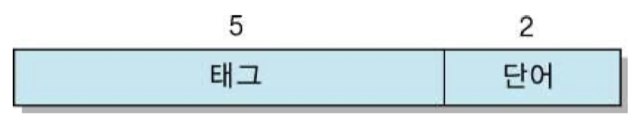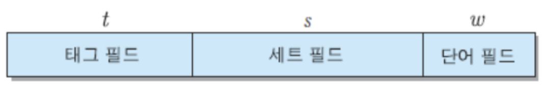 2-way 세트-연관 사상 방식을 사용한다면, 기억장치 주소는 아래와 같이 세 개의 필드들로 나누어짐