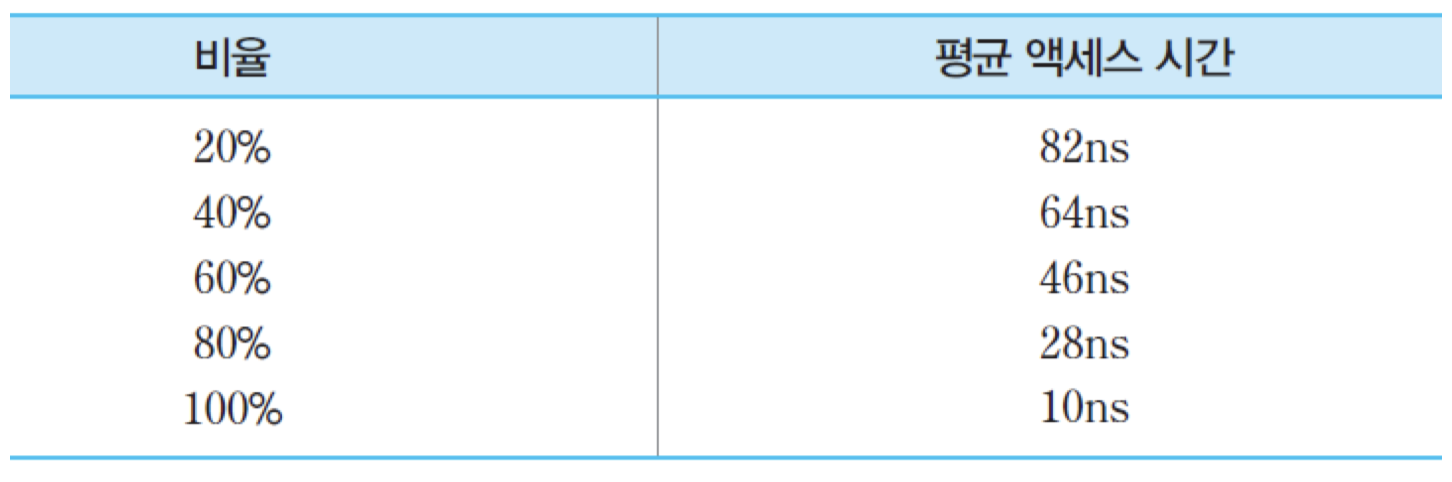 데이터가 첫 번째 계층의 기억장치에 있는 비율에 따른 평균 액세스 시간