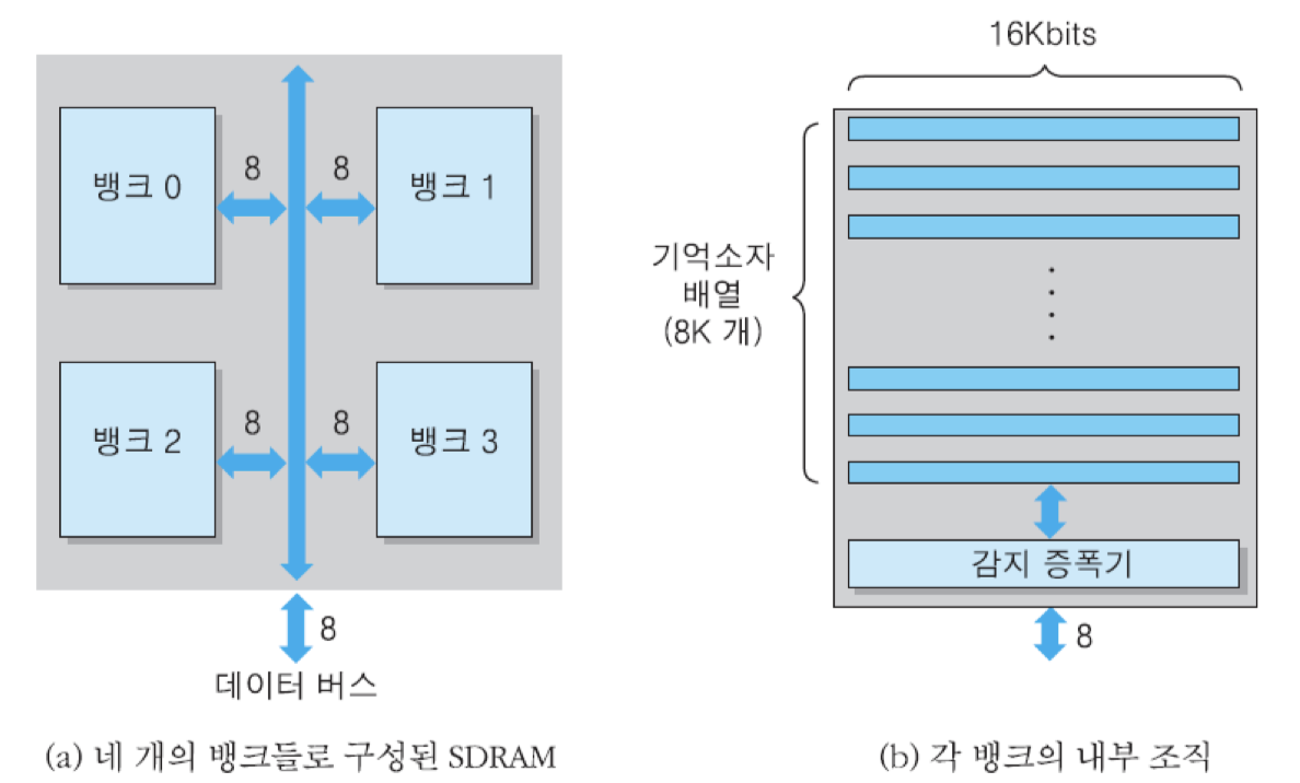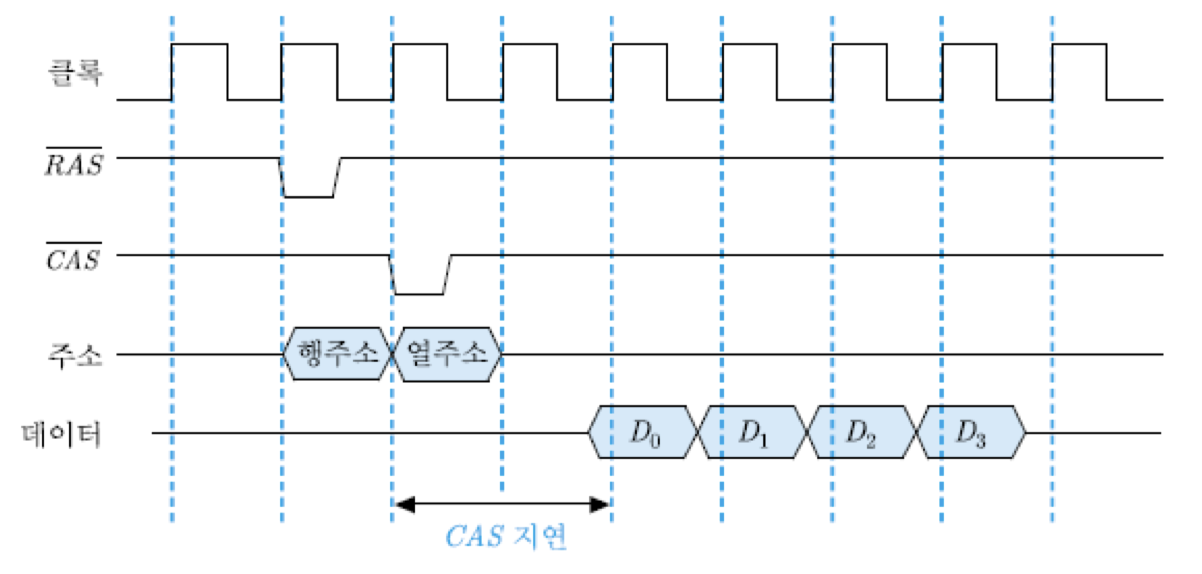 동기식 DRAM(SDRAM) : 액세스 및 데이터 전송 동작이 시스템 클록 신호에 동기화되어 수행되는 DRAM