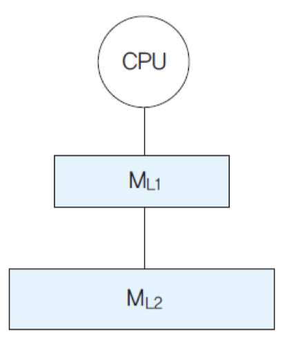 원하는 데이터가 첫 번째 계층 기억장치(ML1)에 있다면 즉시 액세스하고, 만약 없다면, 두 번째 계층의 기억장치(ML2)를 액세스