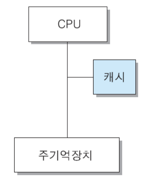 그러한 문제를 해결하기 위하여 대부분의 컴퓨터시스템에서는 CPU와 주기억장치 사이에 속도가 빠르지만 용량은 작은 캐시 메모리를 설치