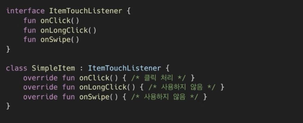 인터페이스에 안쓰는 메서드가 있고 그것을 구현하는 행위를 하면 안된다.