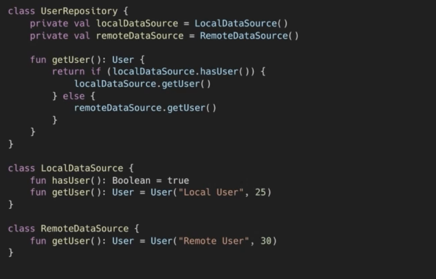 하위인 Local과 Remote에서 변경이 발생하면 상위인 userRepository()에 영향을 끼칠수 밖에 없는 구조다.