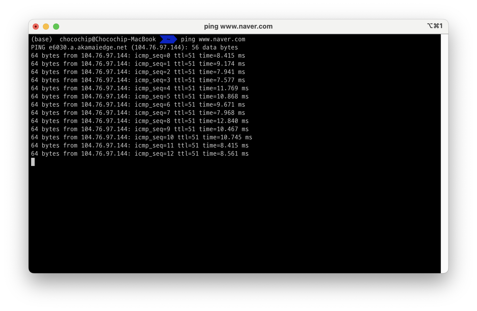 예를 들면, www.naver.com에 접속하려고하면, 다음과 같이 ping 명령어를 사용할 수 있다.