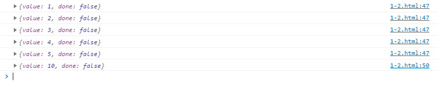 - 이때 값을 단순하게 1 그대로 돌려주는게 아니라, 객체로 한번 포장해서 돌려준다. (value에 돌려받은 값을 넣어주고 done이라는 속성과함께)
