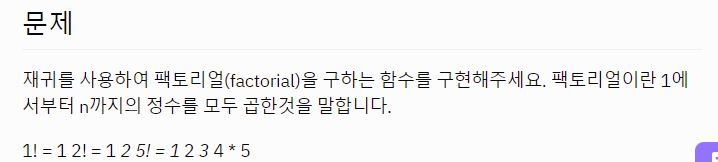 def factorial(n): # 여기에 코드를 작성해주세요. result = 1 for i in range(1,n+1): result *= i return result