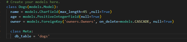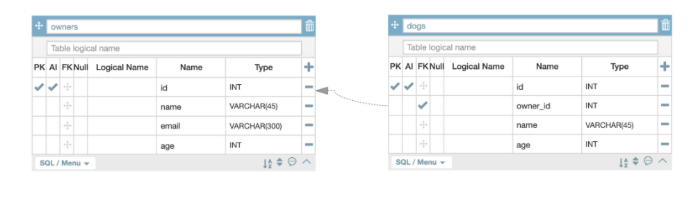 onwers테이블이 잘 생성되었으니 다음은 dogs 테이블을 생성해보자.