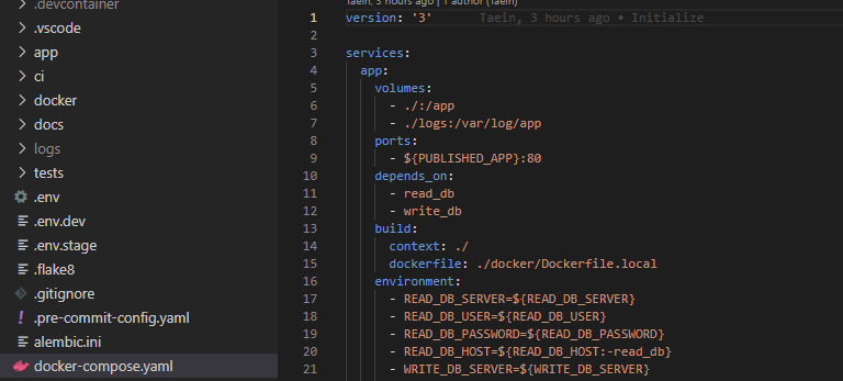 이 파일에 기재되어 있는 내용은 기본적으로 docker build, docker run 커맨드 지정하는 것이 가능한 옵션이 되지만, Docker compose의 yaml 파일로써 기술하는 것으로 여러 개의 컨테이너로부터 만들어진 서비스를 조감하여 보는 것도 가능해져, 보존성의 수고를 가볍게 한다.