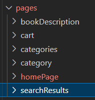 - bookstore예제에서는 메인페이지(homePage), 책 검색결과(searchResults), 책 알파벳 카테고리(categories) , 카테고리별 책 리스트 (category), 장바구니(cart), 책 상세페이지 (bookDescription) 로 구성되어있습니다.