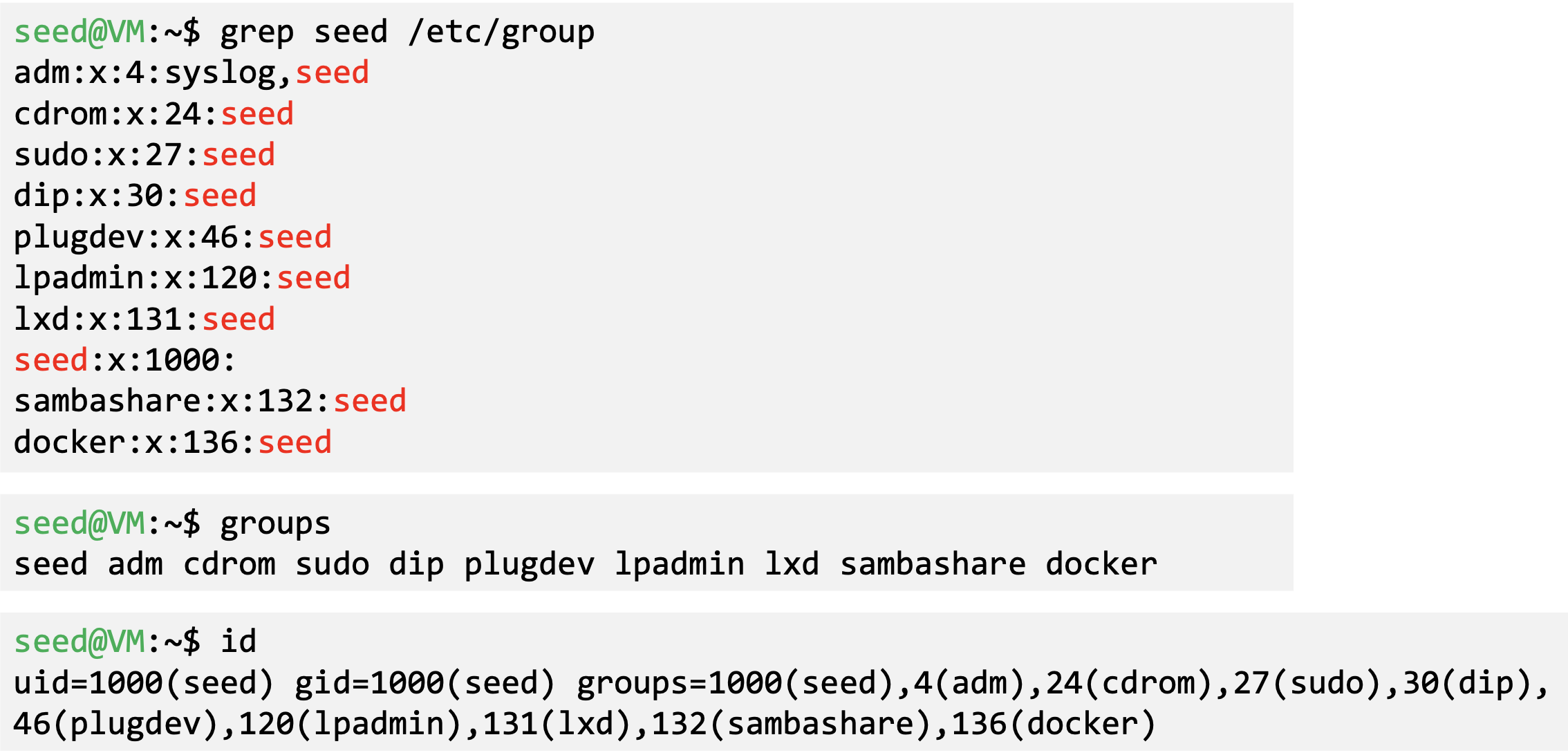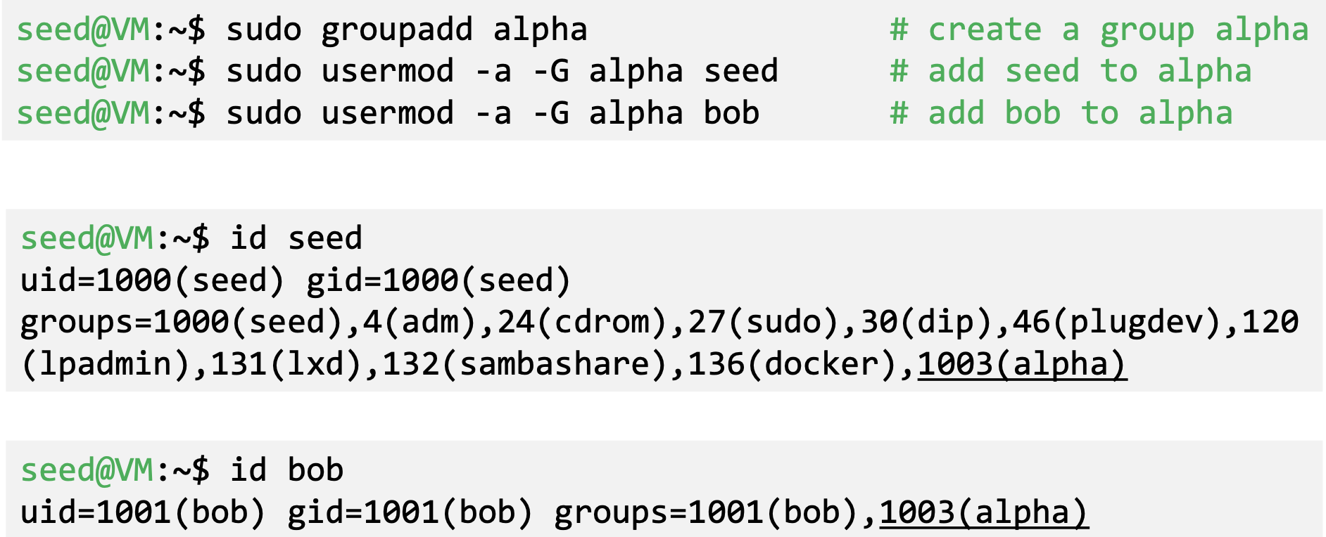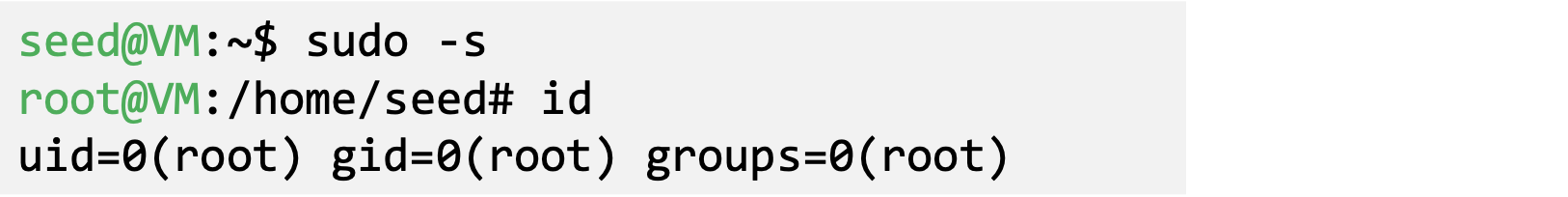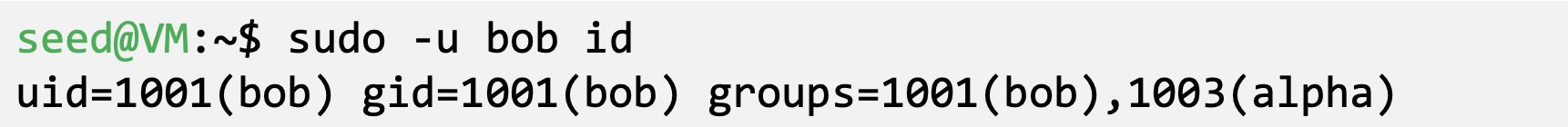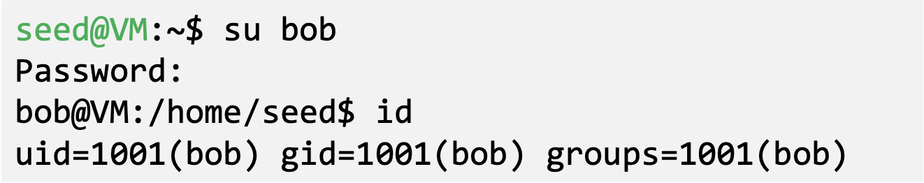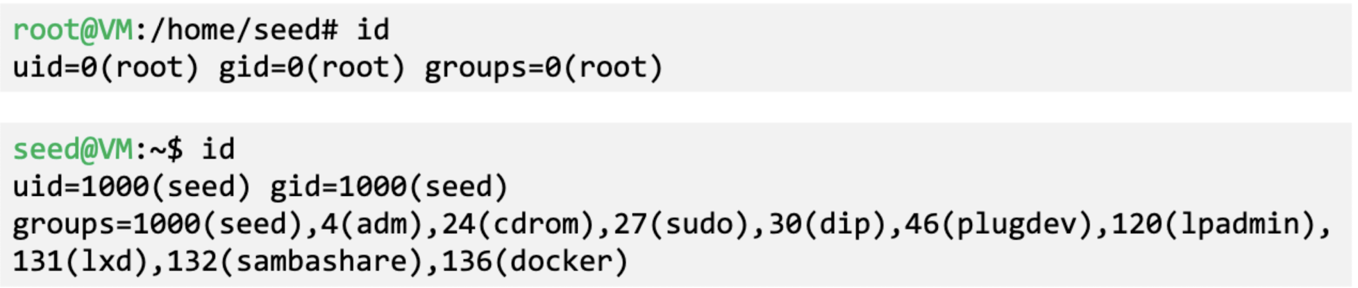 - ‘id’ command prints real and effective user and group IDs