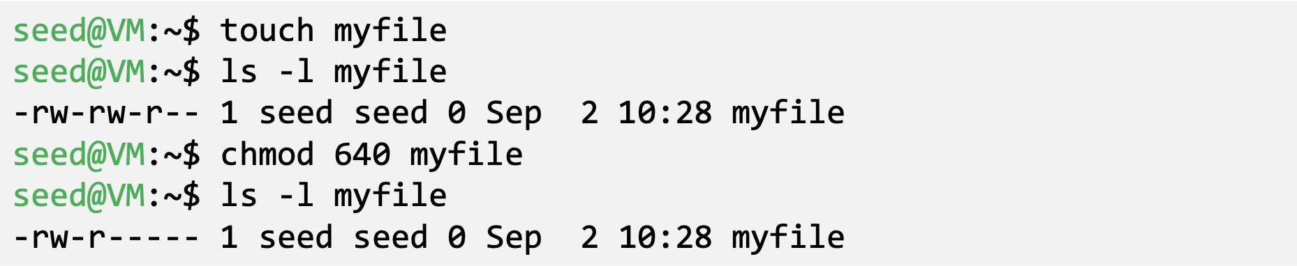 - write (w): user can change the contents of the file
