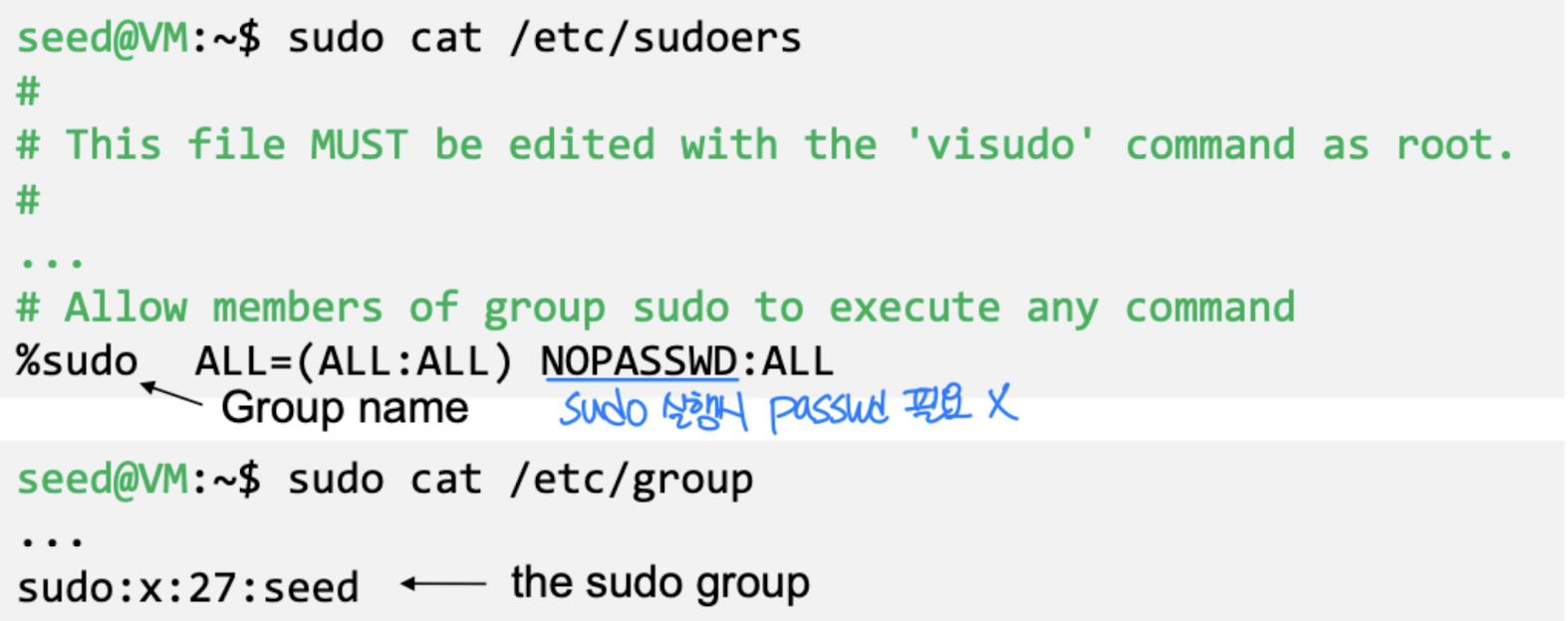 - Here is how the seed user is allowed to run sudo