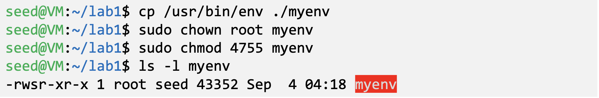 - Make a copy of the env program and make it a Set-UID program :