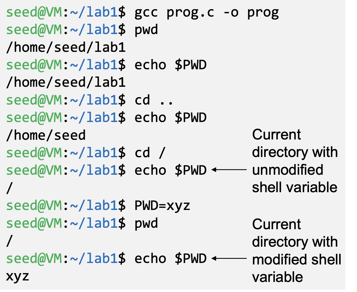 - We have discussed attack surfaces for such shell programs. Here we will focus on the Environment variables aspect.
