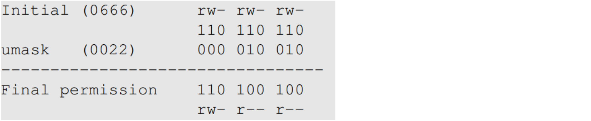Note. The operation of umask is not XOR or AND.