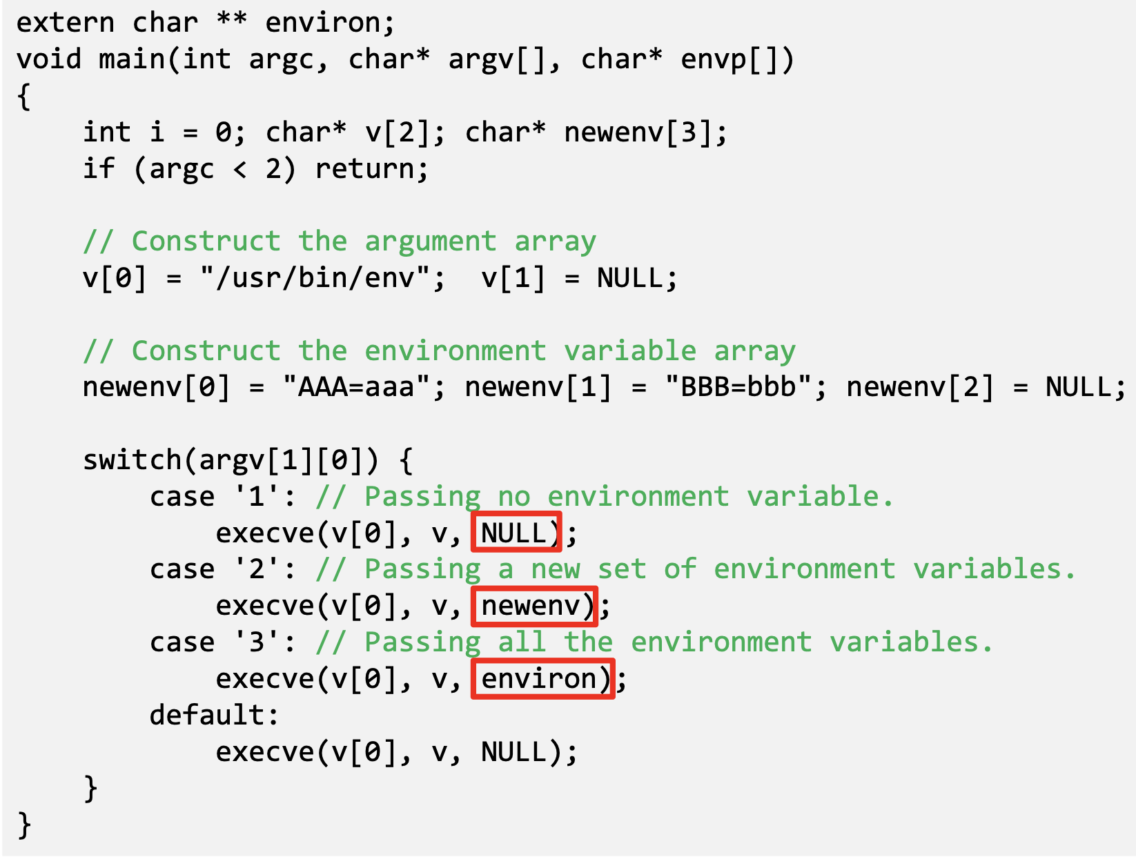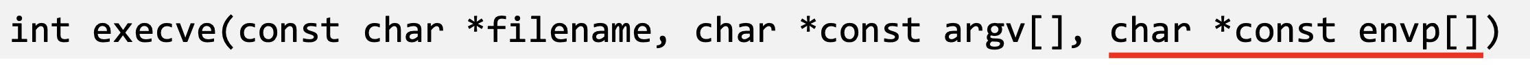 - execve() does not invoke shell, and thus is not affected by environment variables