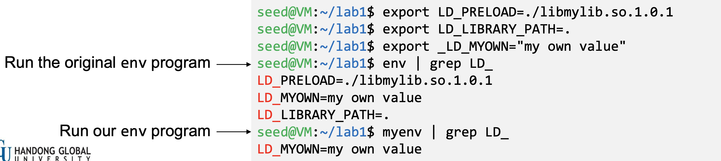 - Export LD_LIBRARY_PATH and LD_PRELOAD and run both the programs: