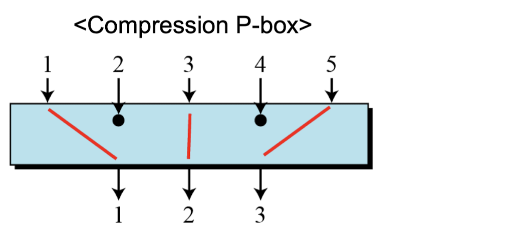 - Compression P-box is a P-box with n inputs and m outputs where m < n