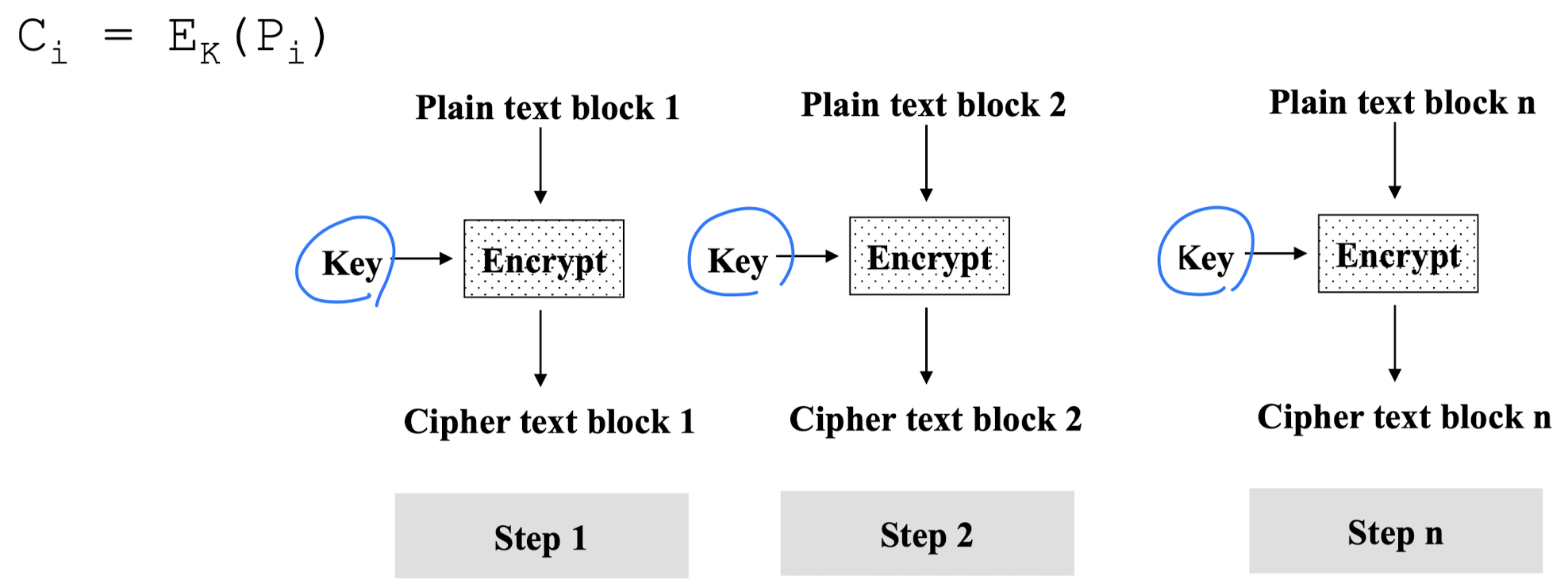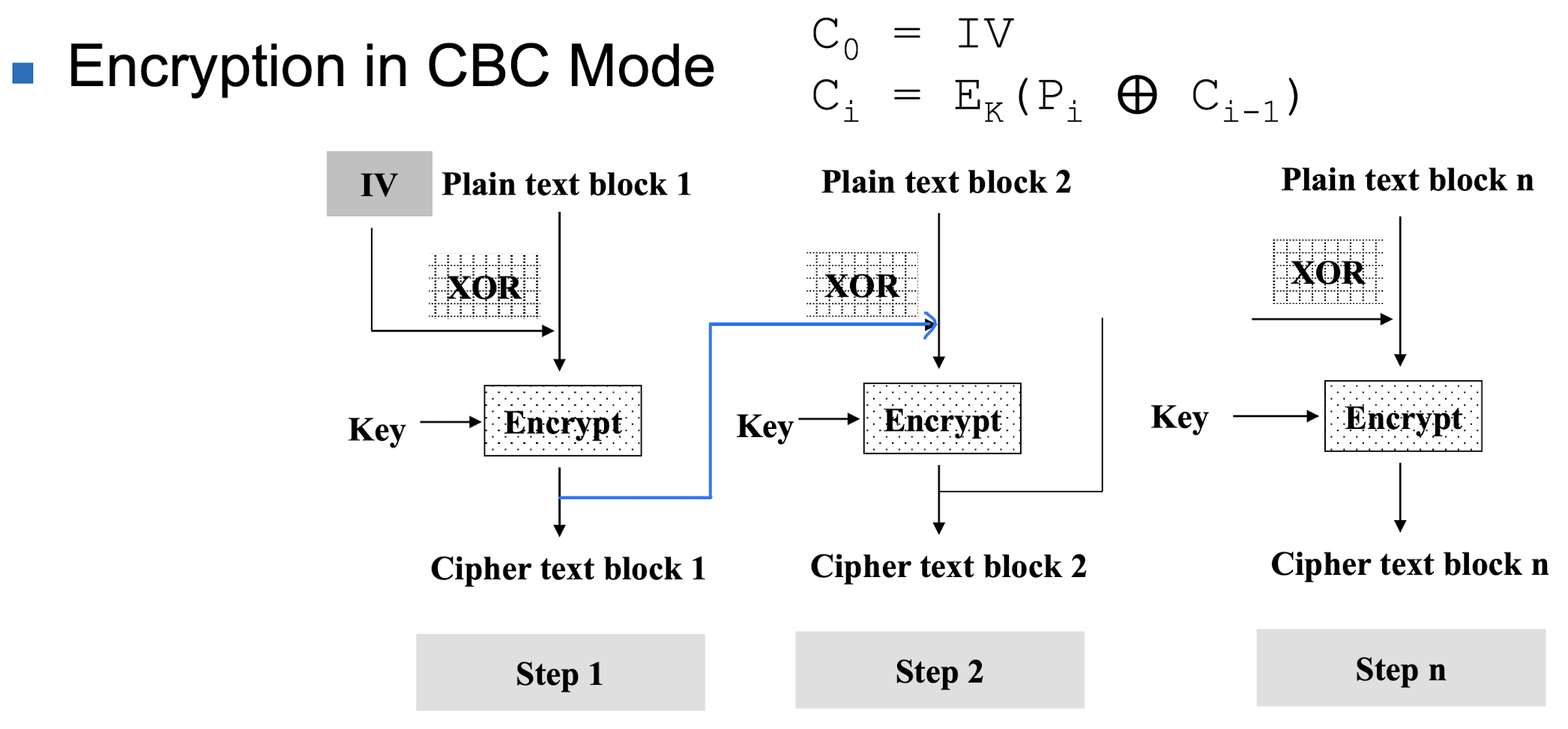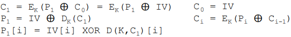 Ci=EK(Pi⨁Ci−1)