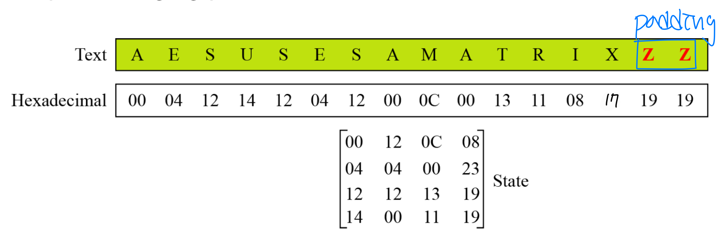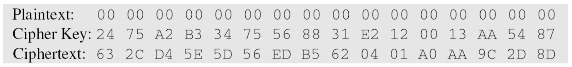 ASCII) is smaller than cipher block size (DES: 64bits, AES:128bits)