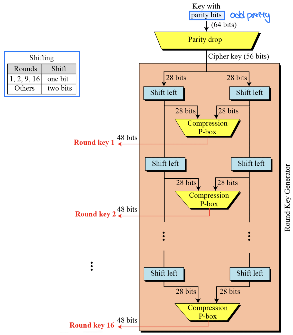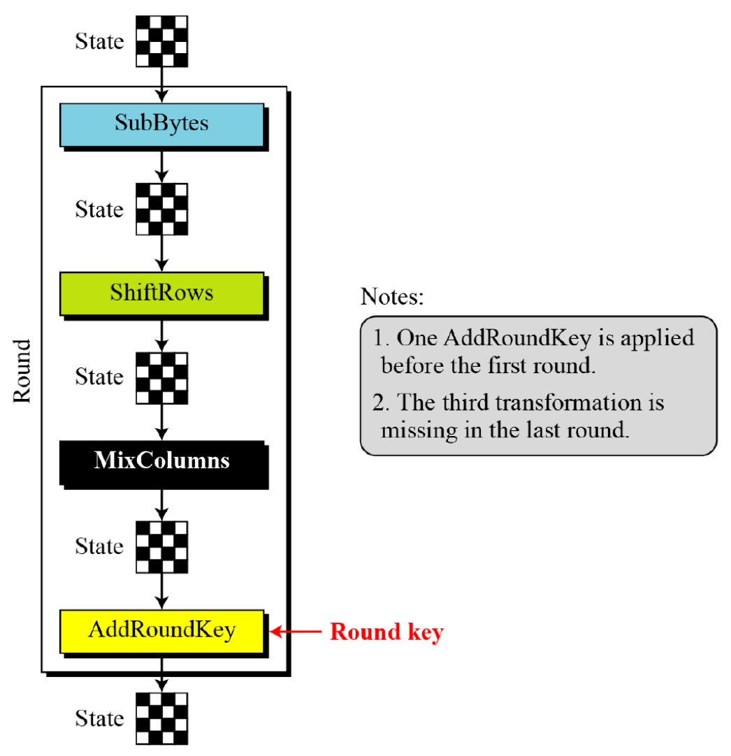 - Rounds: Diffusion and confusion can be achieved using iterated product ciphers where each iteration is a combination of S-boxes, P-boxes, and other components.